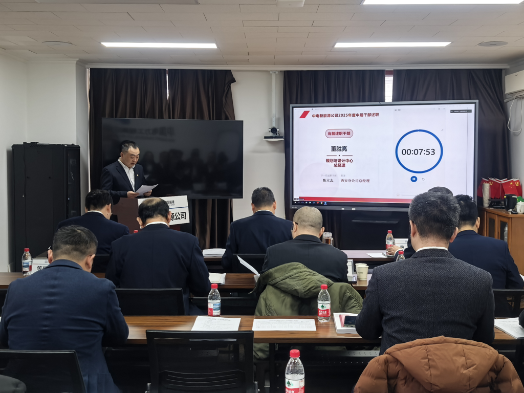 1月12日,中国能建中电新能源公司组织开展2025年度中层干部述职会议,公司党委书记、董事长陈稼苗主持会议。
